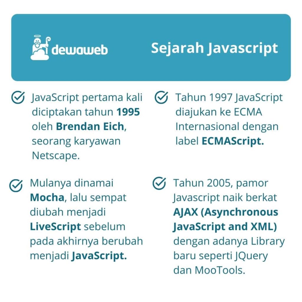 Kalau belum pernah terjun di dunia pemrograman, mungkin kamu masih belum familiar dengan apa itu JavaScript. JavaScript adalah bahasa pemrograman untuk pengembangan website agar lebih dinamis dan interaktif. Konten-konten yang dapat bergerak dinamis di website ternyata adalah salah satu hasil pengaplikasian JavaScript lho! Kali ini, Dewaweb mengajak kamu berkenalan dengan bahasa pemrograman JavaScript, mulai dari sejarah, fungsi, hingga kelebihan dan […]