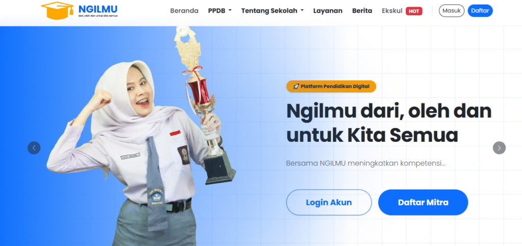 Saat ini, sekolah tidak perlu mengembangkan website dari nol. Berbagai platform digital menyediakan layanan pembuatan website pendidikan yang praktis dan profesional. Salah satu solusi yang dapat dimanfaatkan tersedia melalui ngilmu.cloud.