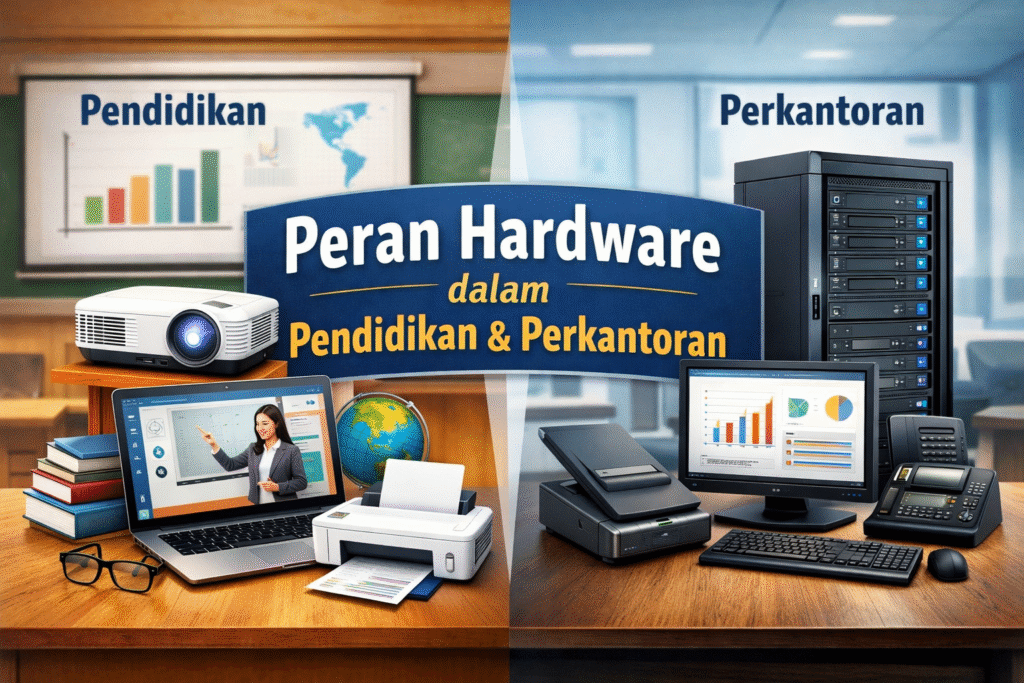 Hardware memegang peran penting di dunia pendidikan dan perkantoran. Di pendidikan, hardware membuat pembelajaran interaktif dan modern. Di kantor, hardware meningkatkan produktivitas dan efisiensi kerja. Oleh karena itu, pemilihan dan pemanfaatan hardware yang tepat sangat penting. Selain itu, hardware membantu kegiatan pendidikan dan perkantoran berjalan lebih efektif, produktif, dan siap menghadapi perkembangan teknologi di masa depan.