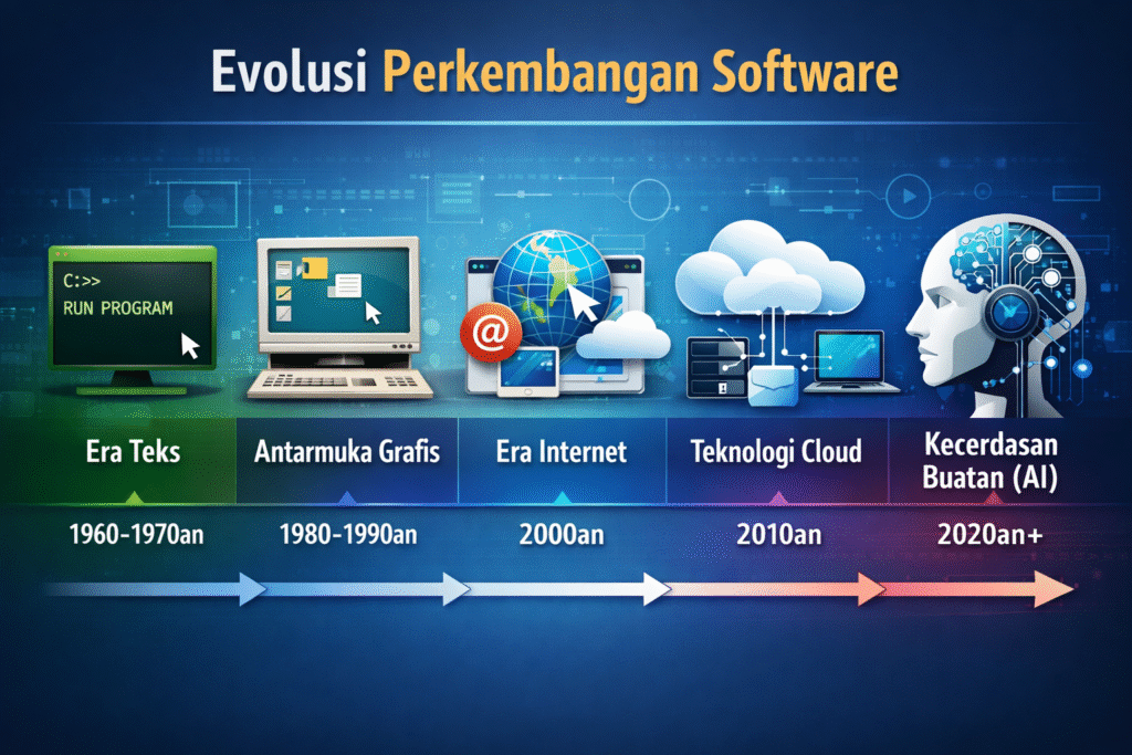 Oleh karena itu, pembahasan mengenai perkembangan software menjadi sangat relevan di era digital modern. Evolusi software menunjukkan perubahan besar dalam dunia teknologi komputer. Dari sistem berbasis teks hingga software modern, teknologi terus berkembang mengikuti kebutuhan manusia.