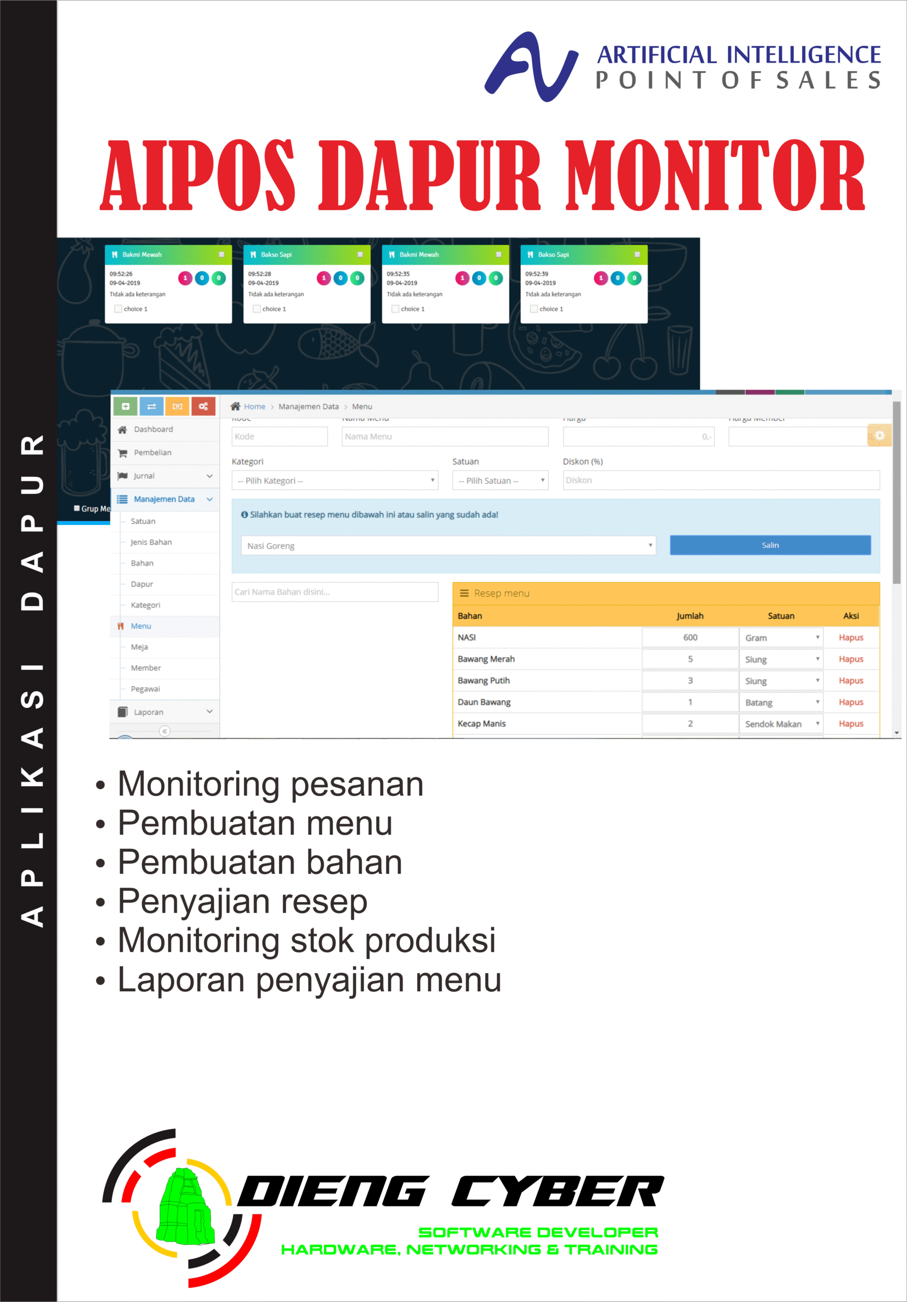 anda mempunyai resto atau rumah makan ? ingin agar anggota dapur anda tidak melayani ke depan ? pakailah aplikasi aipos ini untuk memonitoring pesanan yang masuk maupun keluar.