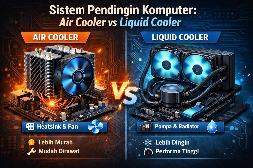 Sistem pendingin komputer memiliki peran penting dalam menjaga suhu hardware tetap stabil. Saat komputer bekerja, prosesor dan komponen lain menghasilkan panas. Oleh karena itu, sistem pendingin membantu mencegah panas berlebih agar performa tetap optimal. Dua jenis pendingin yang paling sering digunakan adalah air cooler dan liquid cooler.