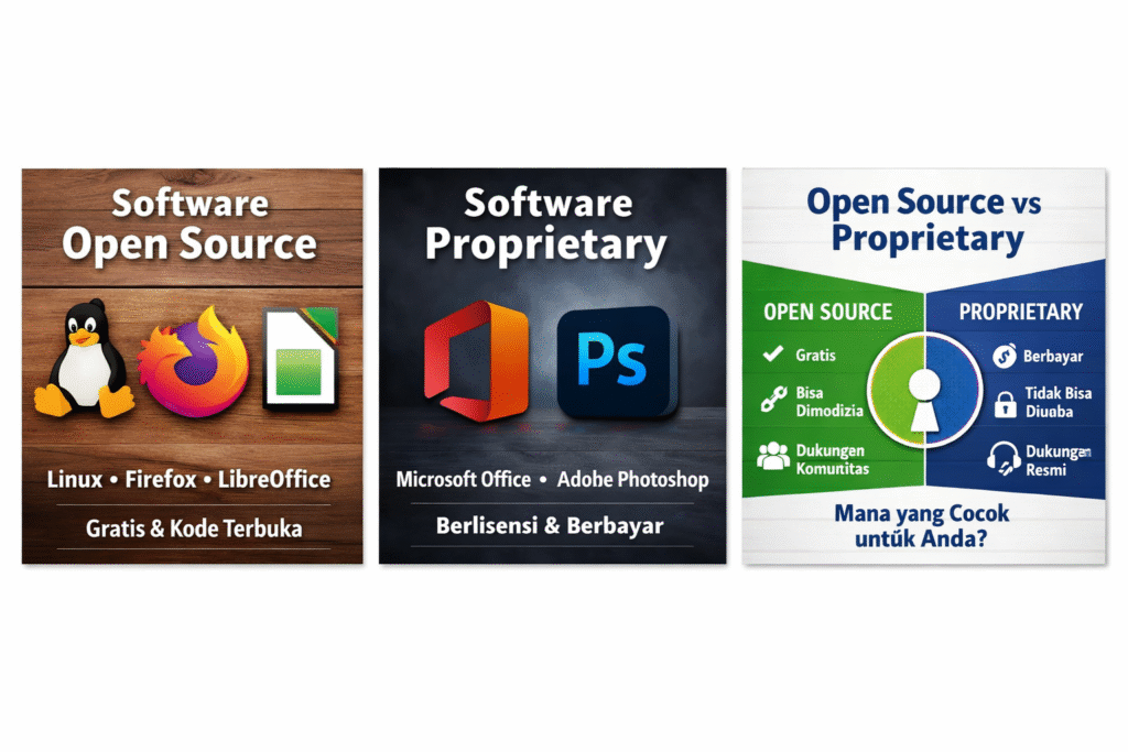 Perangkat lunak kini menjadi bagian penting dalam kehidupan sehari-hari. Namun, tidak semua software bekerja dengan cara yang sama. Secara umum, software terbagi menjadi dua kategori: open source dan proprietary (berlisensi komersial). Memahami perbedaan keduanya membantu Anda memilih software yang sesuai kebutuhan, baik untuk pribadi, bisnis, maupun pendidikan.